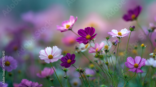 © Aino Minako, Fototapeta premium Closeup of cosmos flowers in natural meadow