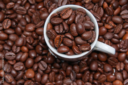 Fototapeta premium Closeup of cup filled with coffeee beans