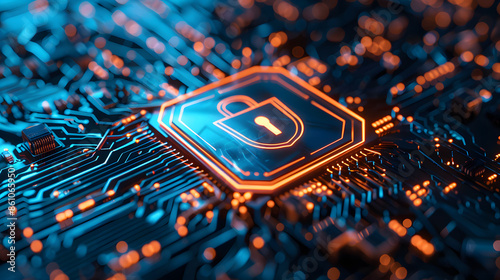 Fototapeta premium Closeup of cybersecurity measures to prevent online threats showcasing advanced solutions and prevention strategies. Concept Cybersecurity Measures, Online Threats, Advanced Solution
