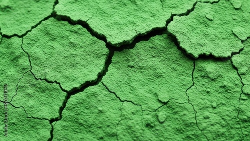 © Shihab, Obraz premium Closeup of dry cracked earth with green paint on surface