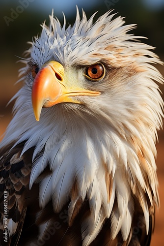 © Saim Art, Obraz premium Closeup of Eagle or Hawk sitting on stone and ready for hunting Generative AI