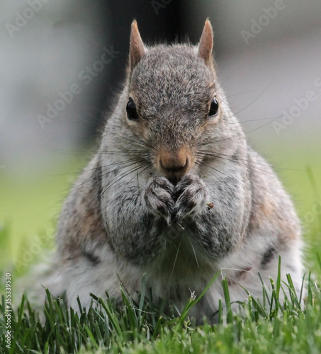 © Kayla, Fototapeta premium Closeup of Eastern Gray Squirrel Eating