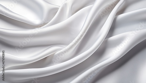 Obraz premium Closeup of elegant white silk fabric cloth background with slight crumpling luxury texture design