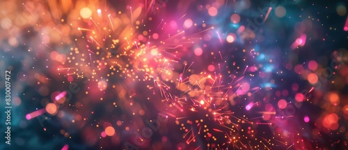 Obraz premium Closeup of fireworks exploding in the night sky, emphasizing the vibrant...