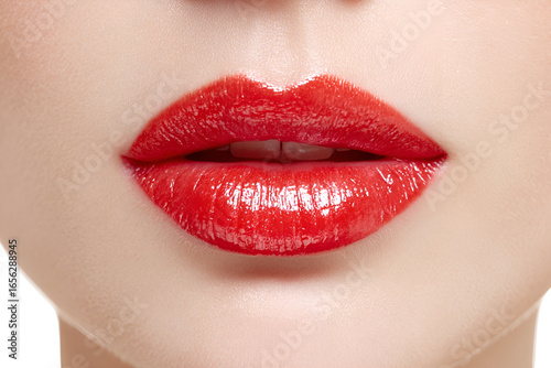 Fototapeta premium Closeup of glossy red lips beauty makeup