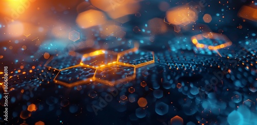 Fototapeta premium Closeup of Glowing Orange and Blue Hexagon Pattern