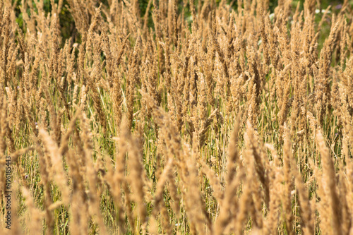 © Cenusa Silviu Carol, Fototapeta premium Closeup of golden bush grass with selective focus on foreground