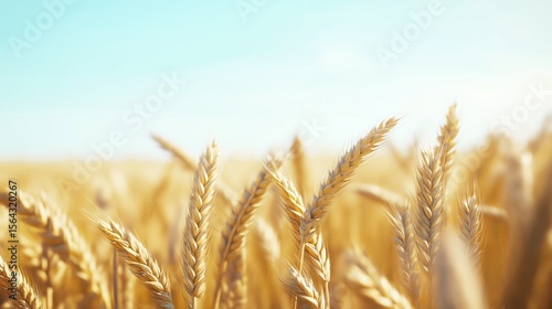 Fototapeta premium Closeup of golden wheat field under bright sky