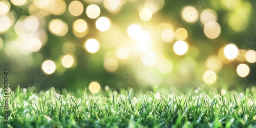 © MdMoinul, Obraz premium closeup of green grass with blur bokeh light background