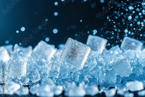Obraz premium Closeup of Ice Cubes with Water Droplets Falling