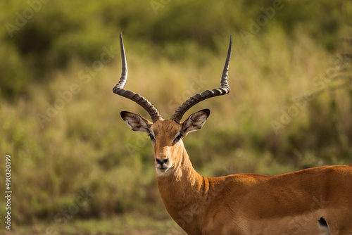 Naklejka premium Closeup of Impala image taken on Safari located in the Serengeti, National...