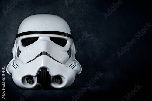 Naklejka premium Closeup of Imperial stormtrooper helmet replica star wars of Hasbro Star Wars Black Series. Illustrative editorial
