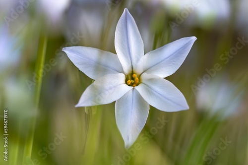 Fototapeta premium Closeup of Ipheion uniflorum blooming in a lush, green meadow
