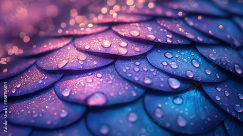 Fototapeta premium Closeup of iridescent animal fur with water droplets and colorful backdrop