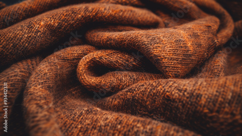 © Olga, Fototapeta premium Closeup of knitted brown-orange tweed fabric