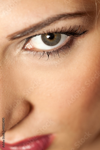 © vladimirfloyd, Obraz premium closeup of made-up female eye with artificial eyelashes