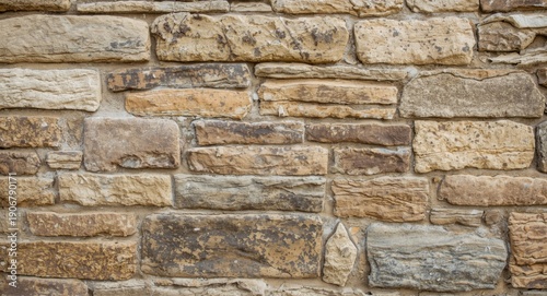 © MetaPixel, Obraz premium Closeup of masonry wall featuring textured cobblestone and flagstone rectangular bricks
