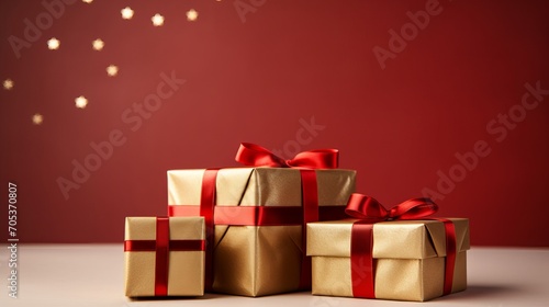 Obraz premium Closeup of minimalistically decorated Christmas presents AI generated