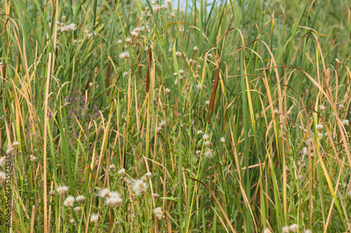 © Cenusa Silviu Carol, Fototapeta premium Closeup of narrowleaf cattail with selective focus on foreground