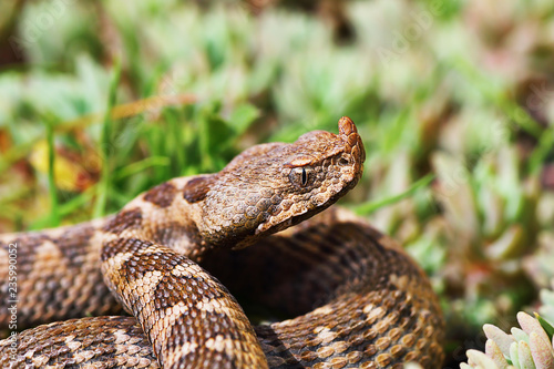 © taviphoto, Fototapeta premium closeup of nose horned viper in natural environment