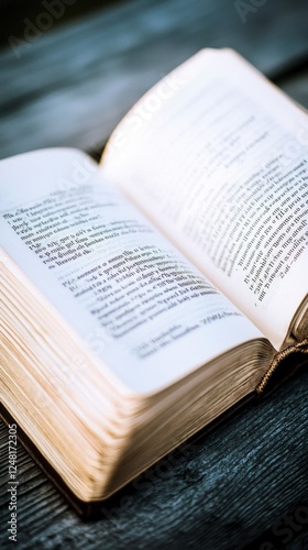© BOJOShop, Fototapeta premium Closeup Of Open Antique Book With Aged Pages And Vintage Text