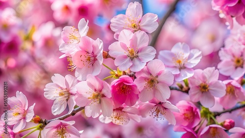 Obraz premium Closeup of pink cherry blossom flowers in spring