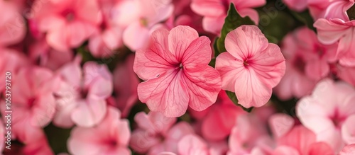 Fototapeta premium Closeup Of Pink Inpatien Flowers Growing In Spring