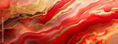 Obraz premium Closeup of polished abstract red and gold agate crystal natural quartz healing stone texture background