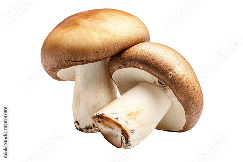 © Vasyl Onyskiv, Fototapeta premium Closeup of Porcini mushroom showing its textured cap and stem isolated on a white background. Concept of fungi and nature