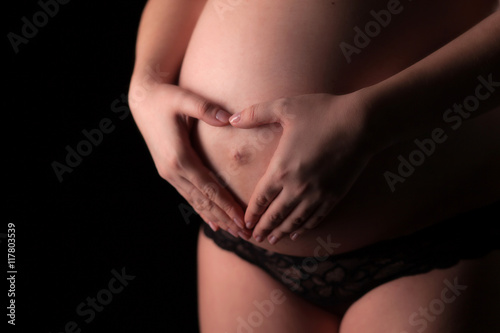 Fototapeta premium Closeup of pregnant woman make hands heart shape