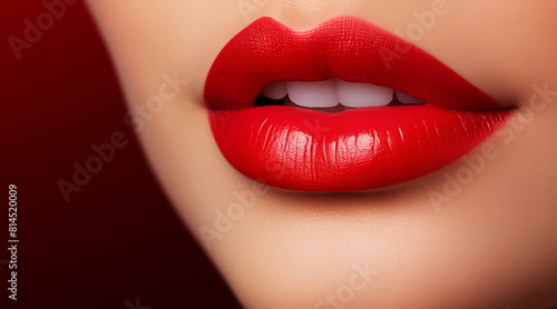 Obraz premium closeup of red lipstick with woman's lips for beauty and cosmetics concept