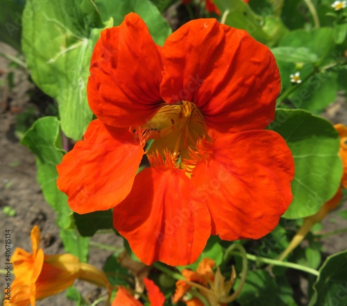Fototapeta premium closeup of red nasturtium flower