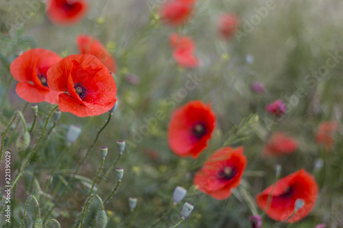 Obraz premium Closeup of red poppies (Papaver rhoeas). red poppy flowers - Papaveraceae...