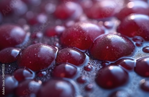 Obraz premium Closeup of ripe red grapes creates rich wine must. Bubbles form during fermentation in traditional old world winemaking process. Autumn harvest juice.