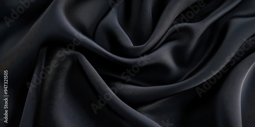 © Palugada, Obraz premium Closeup of rippled black satin fabric texture background. Luxurious background design