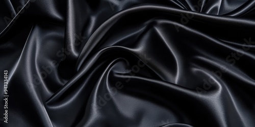 © Palugada, Obraz premium Closeup of rippled black satin fabric texture background. Luxurious background design