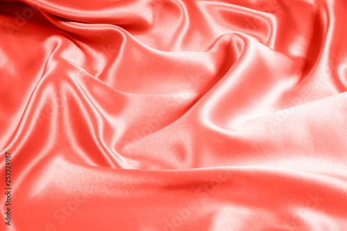 © Danil Bukharov, Obraz premium Closeup of rippled coral satin fabric