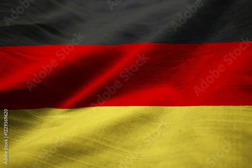 © Shahid Mehmood/imageBROKER, Naklejka premium Closeup of Ruffled Germany Flag, Germany Flag Blowing in Wind