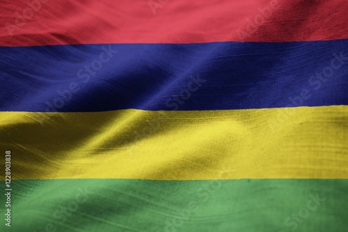 Naklejka premium Closeup of Ruffled Mauritius Flag, Mauritius Flag Blowing in Wind