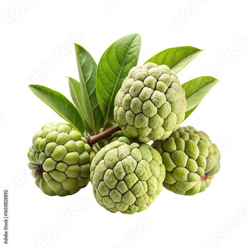 © MdRipon, Fototapeta premium Closeup of Several Fresh Green Sugar Apples with Vibrant Green Leaves