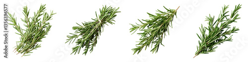 © Naruedetch, Naklejka premium Closeup of several green sprigs of freshly harvested rosemary a fragrant and flavorful Mediterranean herb commonly used in cooking and natural remedies