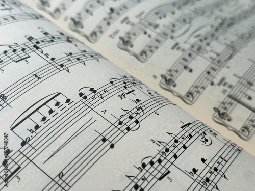 Fototapeta premium Closeup of Sheet Music. Musical Notes with Selective Focus. close up of a...