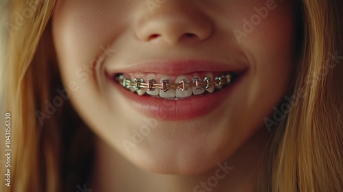 Obraz premium Closeup of Smiling Woman with Colorful Braces