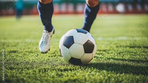 © Supanat, Fototapeta premium CloseUp of Soccer Player Dribbling Ball on Green Grass Field : Generative AI