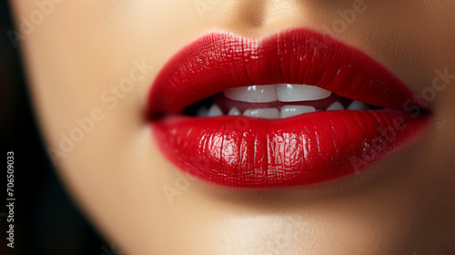 © ZEKINDIGITAL, Obraz premium Closeup of Stunning Red Lips with Luxurious Lip Gloss