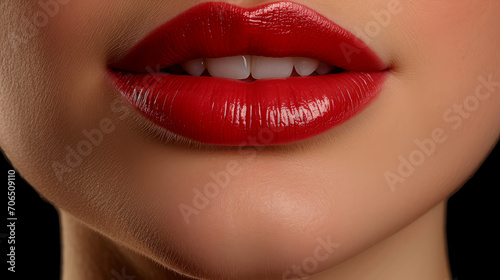 © ZEKINDIGITAL, Obraz premium Closeup of Stunning Red Lips with Luxurious Lip Gloss