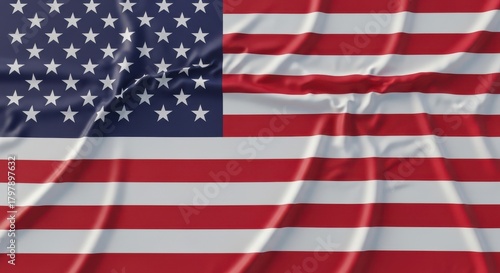 © siam, Naklejka premium Closeup of the american flag waving, showing the stars and stripes in detail with fabric texture and shadows