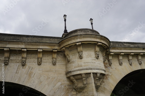 © poupine, Fototapeta premium closeup of the carvings and stone work on an old bridge in downtown Paris, france