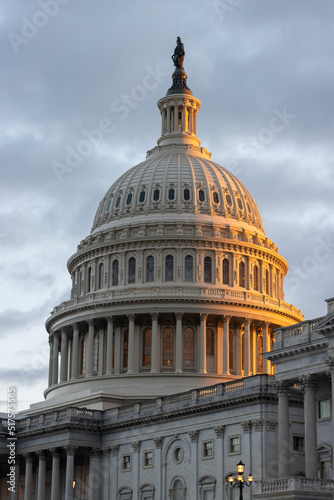 © Tada Images, Obraz premium Closeup of the United States Capitol dome in Washington, DC, during sunset.