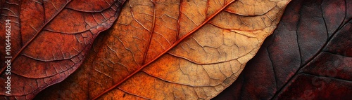Fototapeta premium Closeup of Three Overlapping Dried Leaves with Detailed Veins